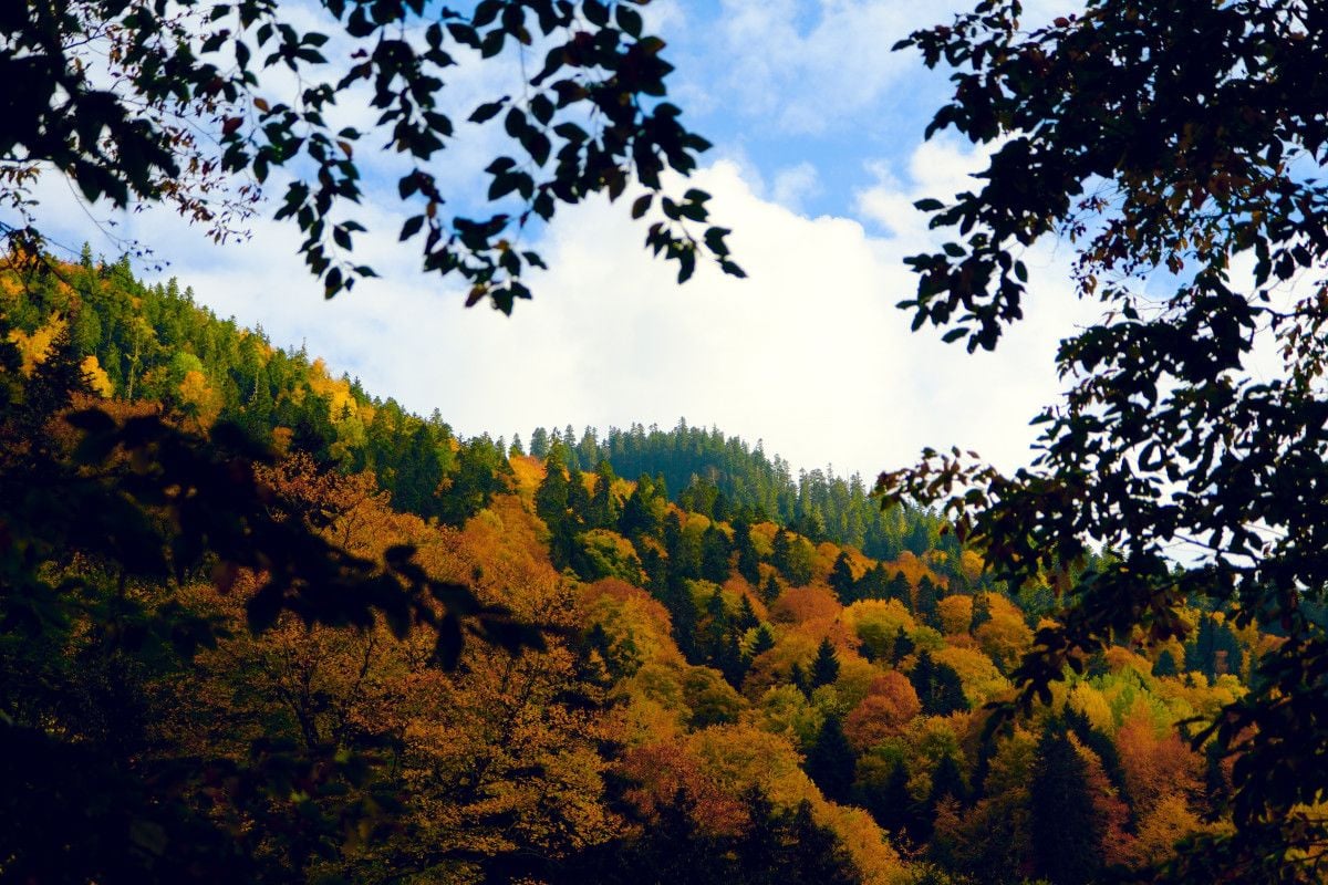 Örümcek Ormanları, doğanın dev anıt galerisi olarak da biliniyor ve sonbaharda sarı, kırmızı, kahverengi ve yeşil tonlarıyla büyüleyici bir görünüm sergiliyor. Yaprakların hışırtısıyla birlikte çağıltılı derelerin sesi, doğanın muhteşem senfonisini oluşturuyor.